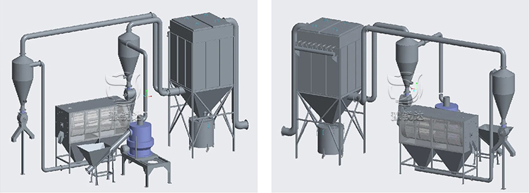 2 、輔機裝有風量調節器,可調節風量大小,風量大細度低、風量小細度高,調到理想的細度即可連續生產。